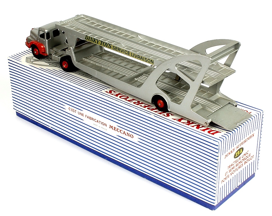French Dinky 39A Unic Boilot Car Transporter. Early issue. Near mint plus/boxed, with packing insert. Bright fresh box! From The Berlin Collection.