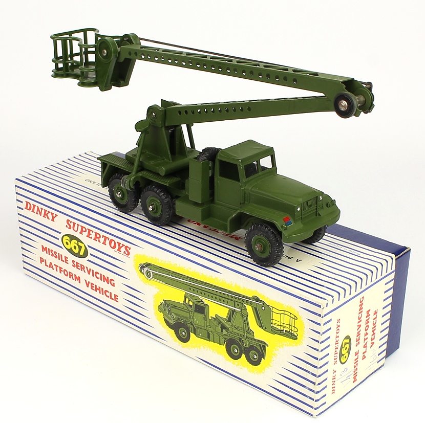 Dinky 667 Missile Servicing Vehicle. Near mint plus/boxed. Nice box! With both packing pieces and Instruction Leaflet. From The Cheshire Collection.