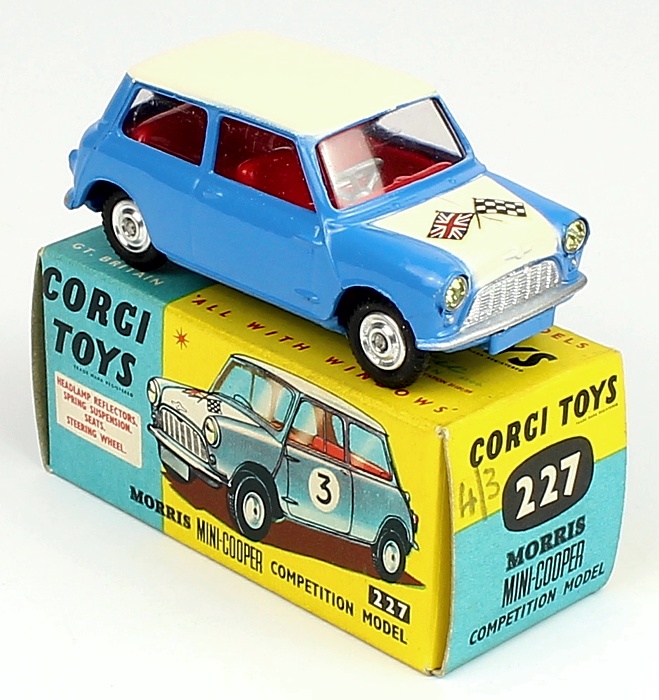 Corgi 227 Morris Mini-Cooper Competition Model. Without Racing Numbers! Very near mint/boxed. From The Cheshire Collection.