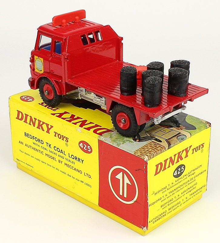 Dinky 425 Bedford TK Coal Lorry. Near mint plus/boxed. Blue interior. Complete with 6 coal sacks and scales. From The Reference Collection.