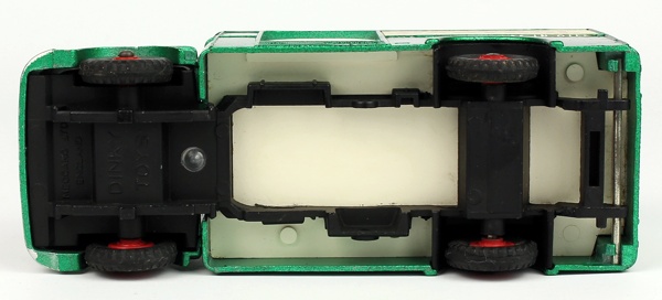 Issued between 1965-70. In metallic emerald green finish, with white shutter doors, red plastic hubs, red interior. Often found with poor transparent ‘Castrol Labels’, this example has fared better than most with bright and complete ‘CASTROL’ paper labels (light age wear).