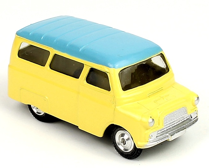 Corgi 404 Bedford "Dormobile" Personnel Carrier. Very, very near mint/unboxed. Lemon with a pale blue roof, undivided windscreen, shaped spun wheels.