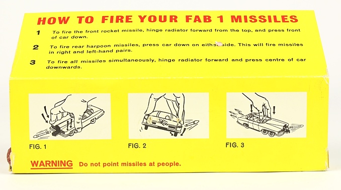 The Fab 1 presents very well indeed. Old shop stock quality piece – hard to find even the smallest mark.. The car comes complete with a *firing rocket and four rear harpoons.