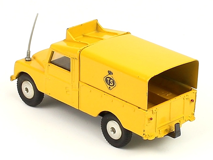Rare to come to the market place. This is an exceptionally scarce Belgian issue. An early issue Land Rover’ finished in brilliant yellow, with shiny flat spun wheels. Roof sign has complete *’RADIO’ lettering, virtually intact ‘TS’ logo on one side of the tin tilt, a coupl eof nicks to the other. Original aerial. Tinplate base. Front bumper on struts. No interior*