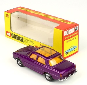 Corgi 281 Rover 2000 TC, vibrant mid-metallic purple. Scarce issue. Very, very near mint/boxed. Fresh box! From The Old School Collection.