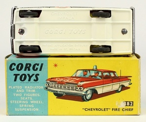 Corgi 482 Chevrolet Fire Chief Car. Very, very near mint/boxed. Shaped spun wheel issue. From The Berlin Collection.