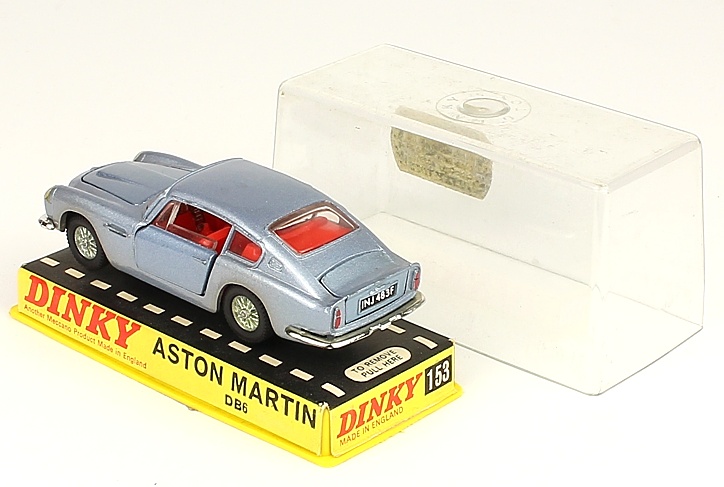 Dinky 153 Aston Martin DB6. Very near mint/boxed. Metallic silver-blue issue. Very near mint/boxed. From The Berlin Collection.