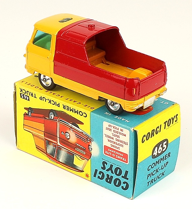 Corgi 465 Commer Pick-Up Truck. Yellow cab issue. Near mint plus (with bench)/boxed. From The Old School Collection.