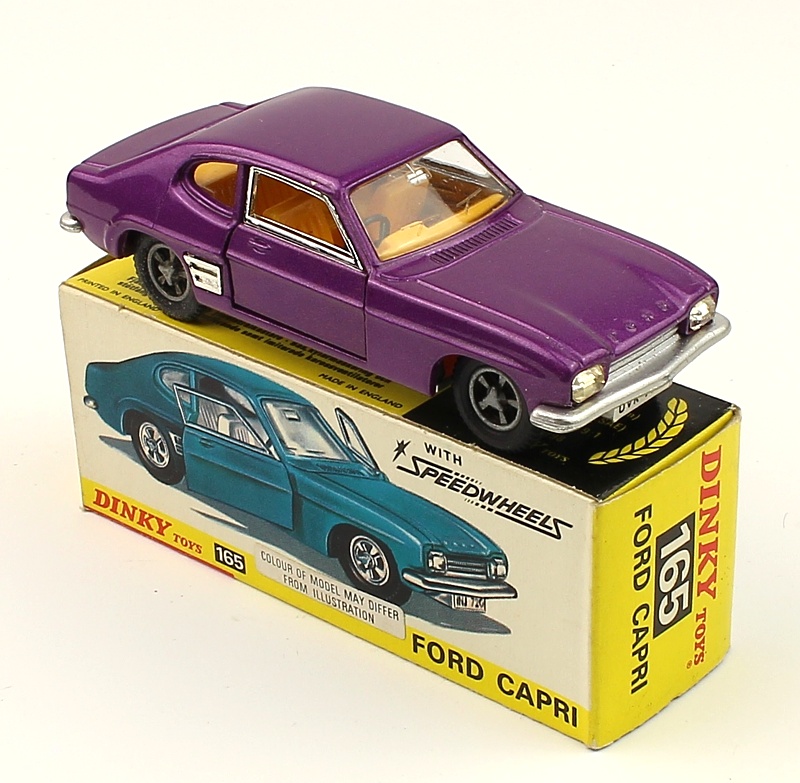Dinky 165 Ford Capri. Very, very near mint/boxed. Metallic purple issue.