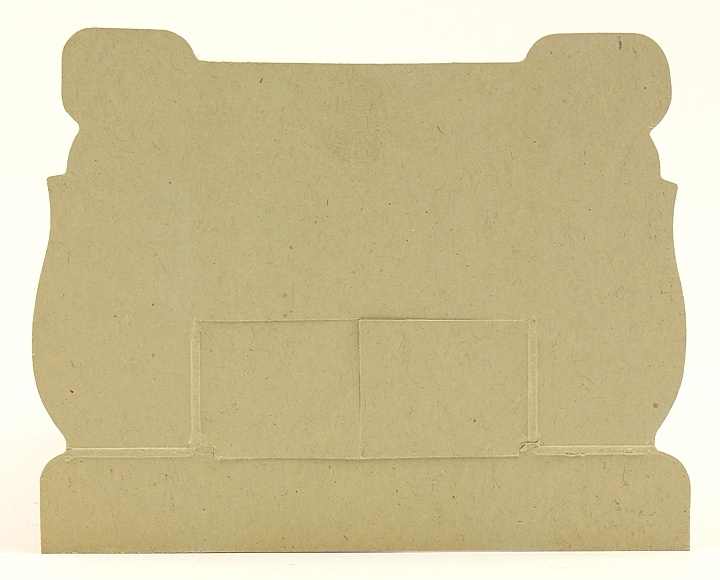 Measures approx. 10cms. × 7.5 cms. The flaps in the centre of the card display can be opened to allow you to place your Corgi car in the centre.