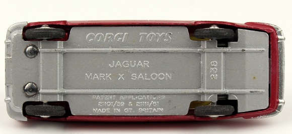 Corgi 238 Jaguar Mark X. Very near mint/boxed. Metallic deep cerise issue. With both suitcases. From The Berlin Collection.