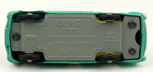 A sought-after Corgi car and one of the key items in the Corgi Gift Set 15 Silverstone Set. This example has a shining turquoise and white finish, lemon interior, notably complete crossed flags on the bonnet, suspension on shining shaped spun hubs, jewelled headlights, racing number 1_.