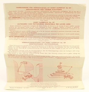 Dinky 977 Commercial Servicing Platform Vehicle. Very near mint/boxed. With Instruction Leaflet, both packing pieces and Dinky Quality Control Tag. From The Cumbrian Collection.