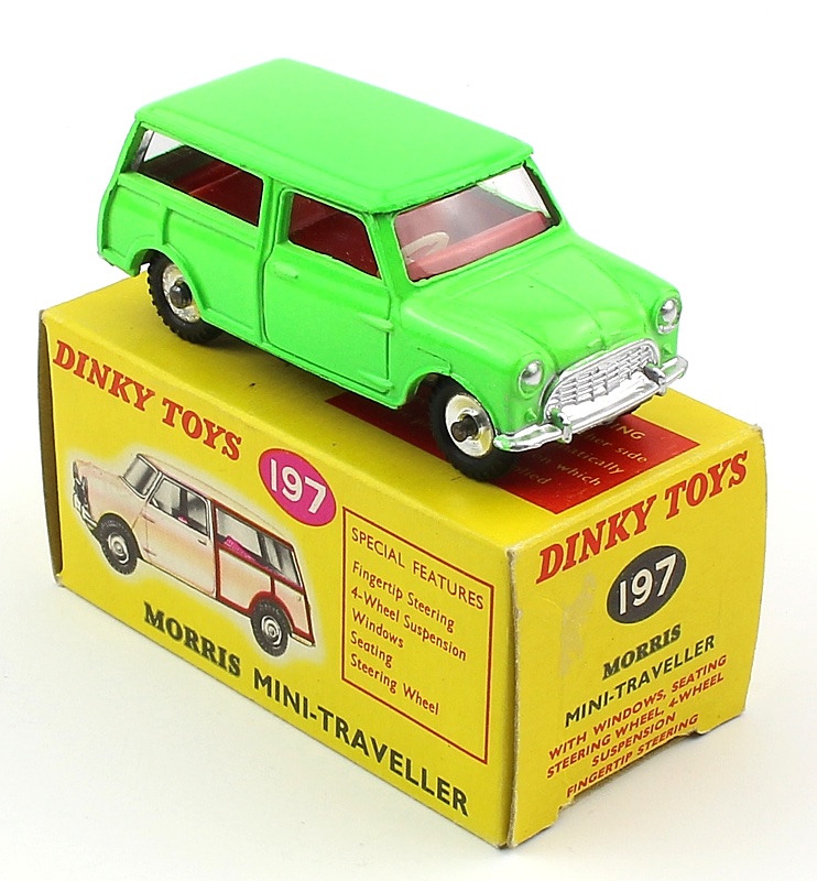 Dinky 197 Morris Mini-Traveller. Very, very near mint /boxed. Scarce fluorescent green version without rear light detail. From the 'Exclusively Mini' Collection.