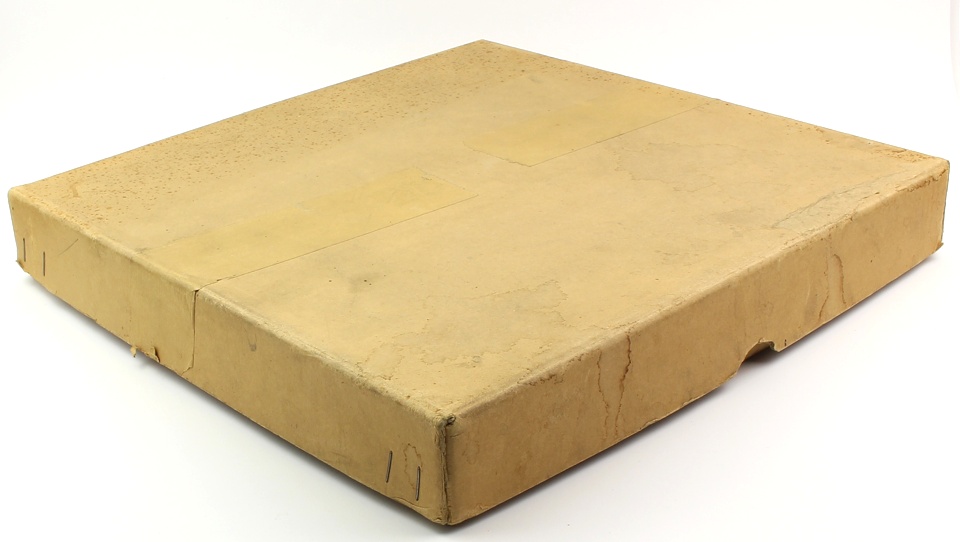 Plain card box with lift off lid is complete. Some age grubbiness/wear and a small handling tear onone lid side.