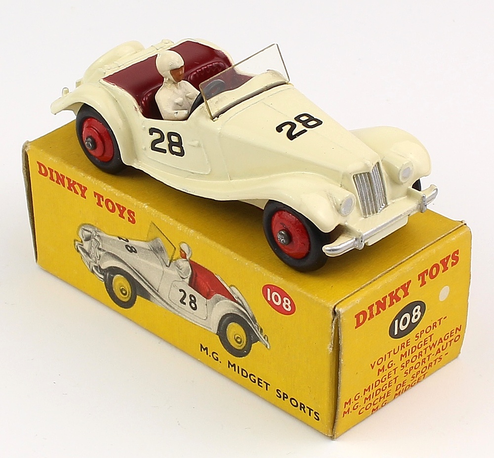 Dinky 108 MG Midget Sports. Cream version. Very near mint/boxed. From The Cumbrian Collection.