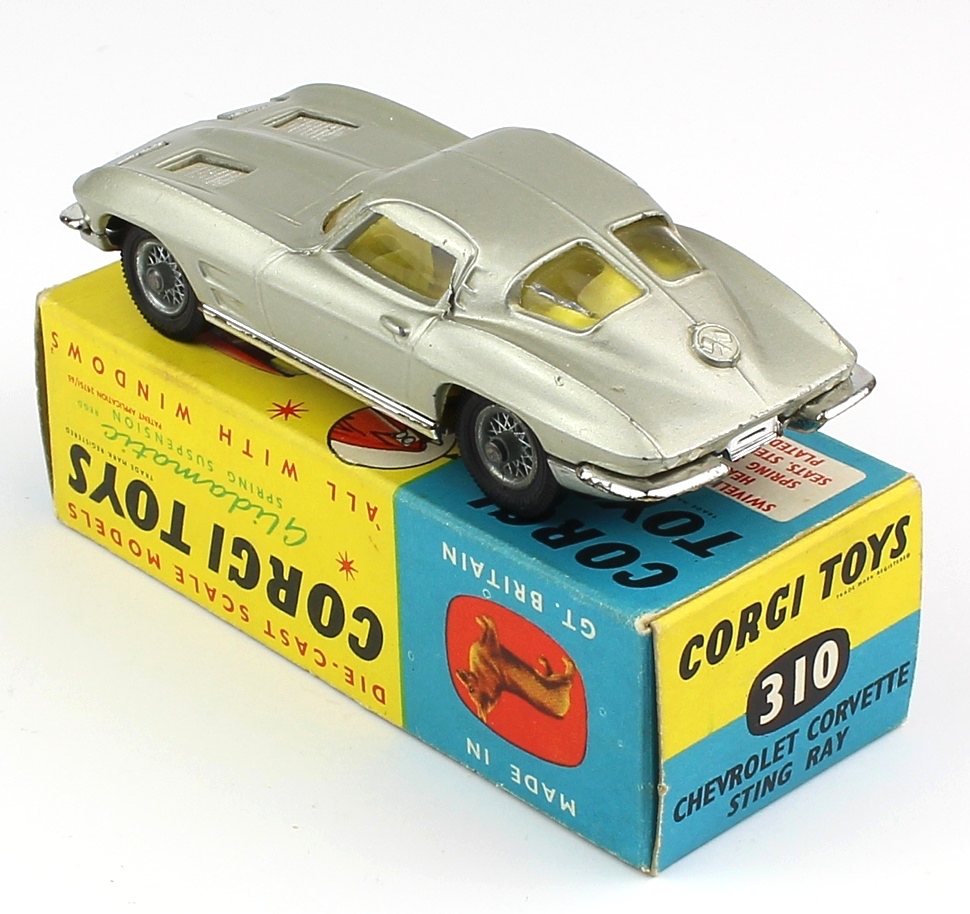 Corgi 310 Chevrolet Corvette Sting Ray. Near mint plus/boxed. Scarce pale CHAMPAGNE SILVER version. From The Berlin Collection.