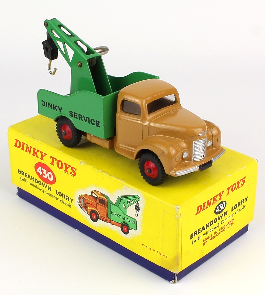 Dinky 430 Breakdown Lorry. Very near mint/boxed. Light tan and mid-green version with window glazing.