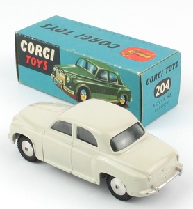 Corgi 204 Rover 90 Saloon. Scarce ivory issue with flat spun wheels. Very near mint/boxed. From The Berlin Collection.