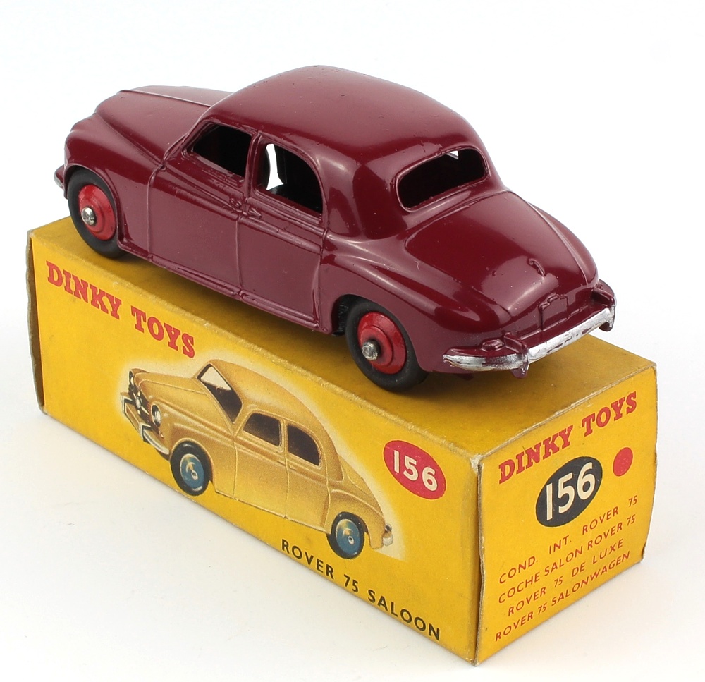 Dinky 156 Rover 75 Saloon. Maroon with red wheels version. Large print baseplate. Very near mint/boxed. Scarce. From The Cumbrian Collection.