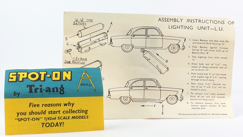 Spot-on 100 SL Zodiac. White & grey issue cream interior. With light fitment. Very near mint/boxed (picture style), with 2 Leaflets. From The Fenman Collection.