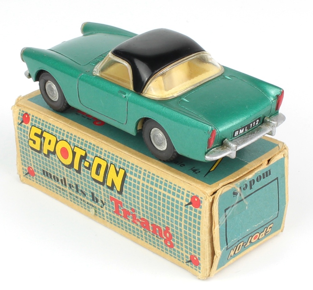 Spot-On 191/1 Sunbeam Alpine Hardtop. Metallic green with a black roof. Scarce. Excellent plus/boxed, with Picture Card & Club Membership Form. From The Fenman Collection