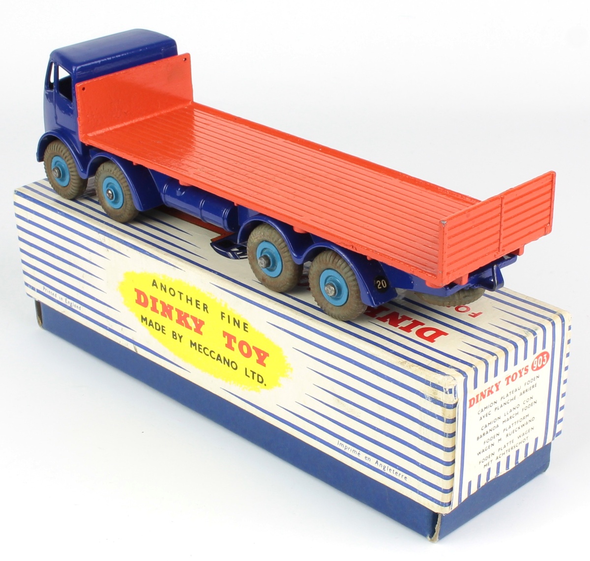 Dinky 503/903 Foden Flat Truck with Tailboard. 2nd type. Violet blue and bright orange version. Near mint plus/boxed (export label). From The Cumbrian Collection.