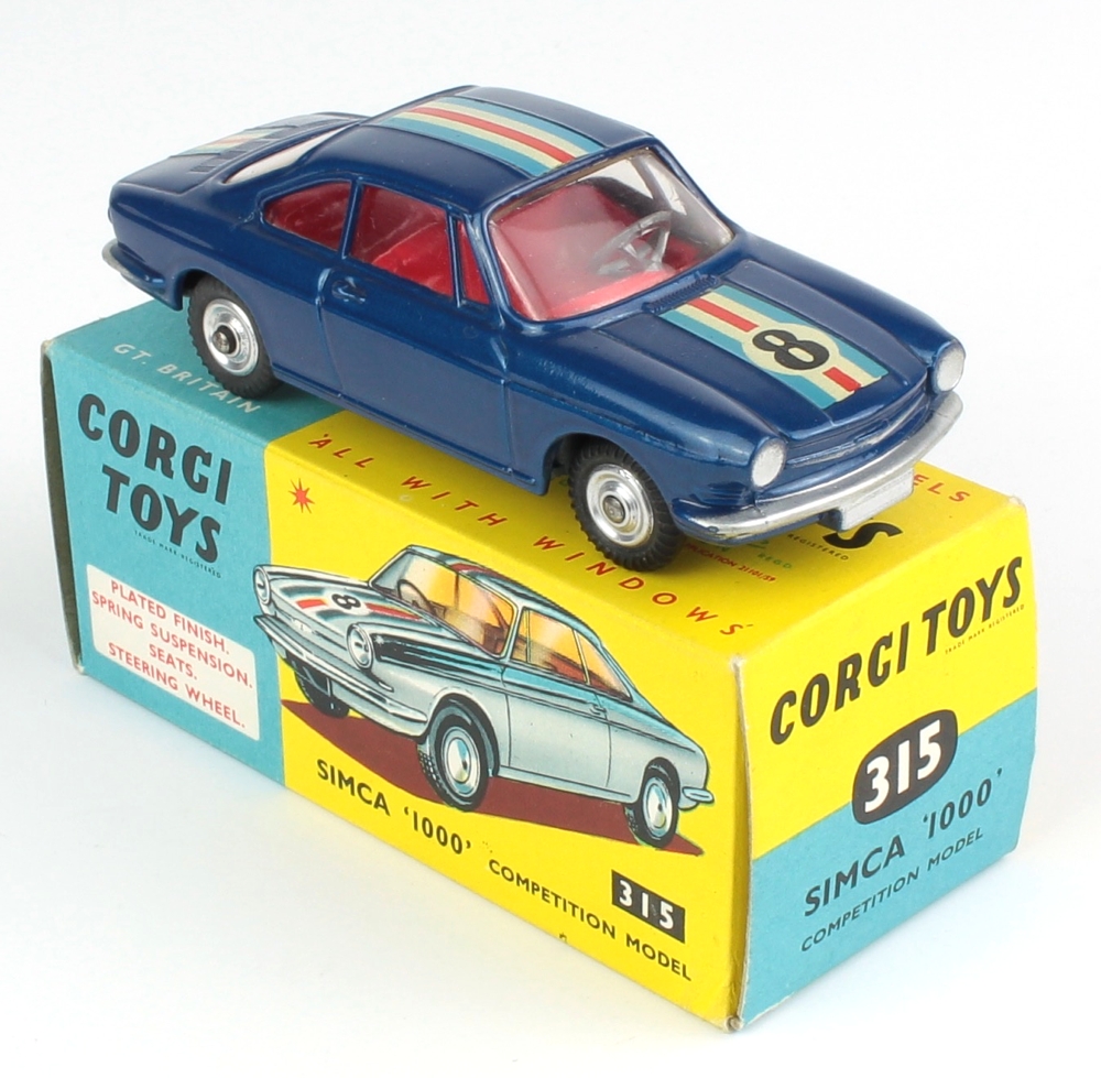 Corgi 315 Simca 1000 Competition Model. Hard to find version in deep metallic blue. Very, very near mint/boxed. A rare find in superlative condition from The Berlin Collection. Bids are invited - please see the relevant section on our Faq Page. QDT starting bid £600. Please note that QDT apply 10% buyer's commission, with a ceiling of £100.