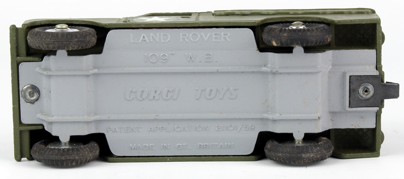 A sought-after military model in pleasing original condition. White star transfers complete throughout. Original intact aerial, removable canopy and suspension on bright shaped spun wheels. Fine tread tyres are well-shaped. Usually found with a lemon interior, this example is more unusual with a red interior.