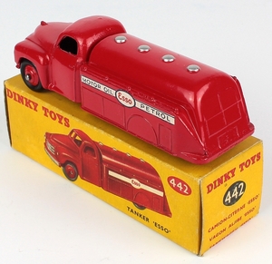 Dinky 442 Petrol Tanker 'ESSO'. Very near mint/boxed. Harder to find version with DARK BLUE LETTERING.From The Cumbrian Collection.