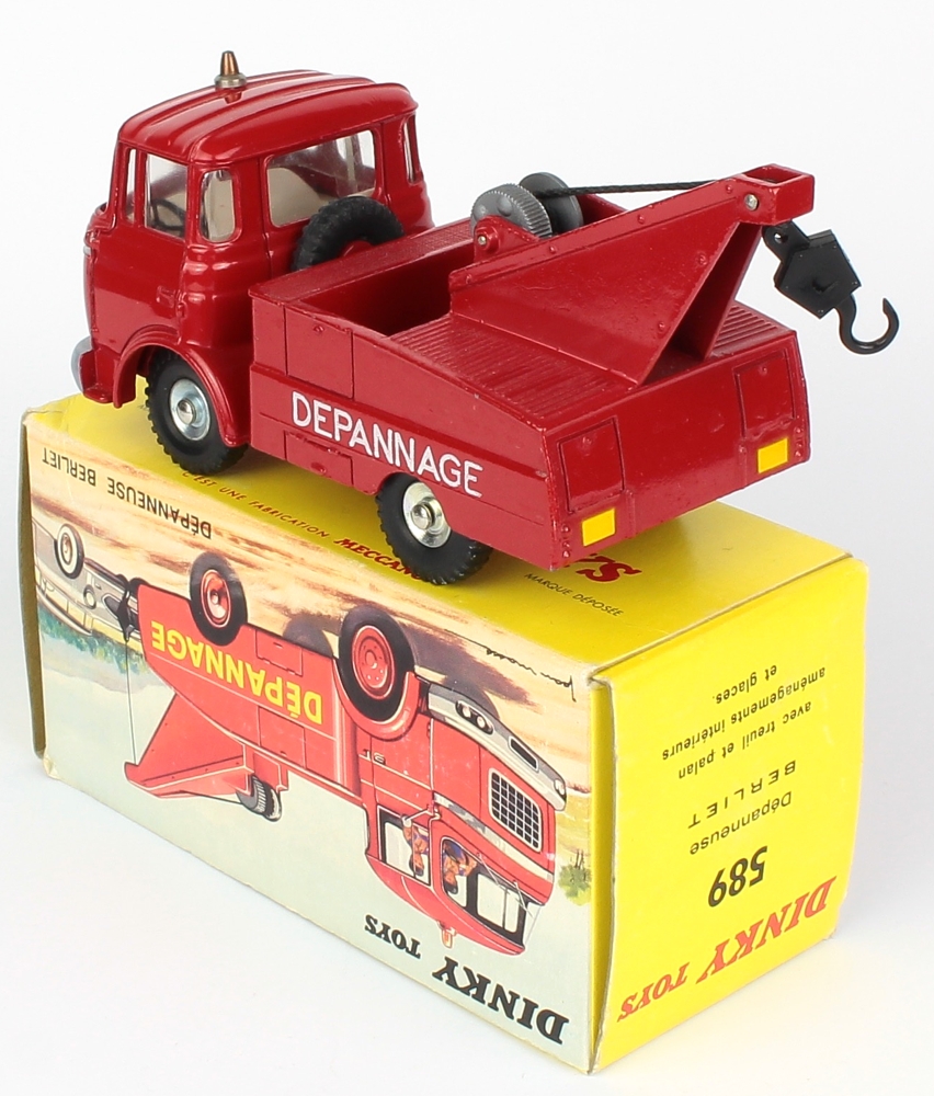 French Dinky 589 Berliet Crash Truck 'DEPANNAGE'. Red with white lettering. Very near mint/boxed. Picture box with serrated tag with Instruction Slip! . Another scarce item from The Cumbrian Collection.