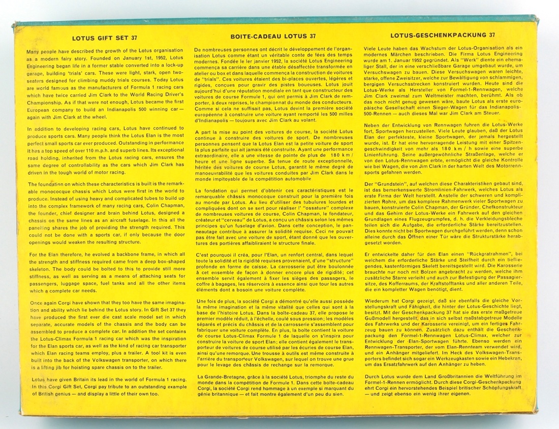 Corgi Gift Set 37 Lotus Racing Team Set. Very near mint -very, very near mint, with accessories/boxed.