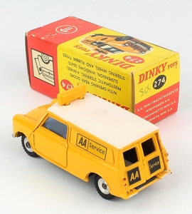 Dinky 274 A.A. Mini Van. Scarce issue in yellow with a WHITE roof and blue interior. Late issue - A.A. letters on BLACK BACKGROUND on the rear doors. Very, very near mint/boxed. From The Cumbrian Collection.
