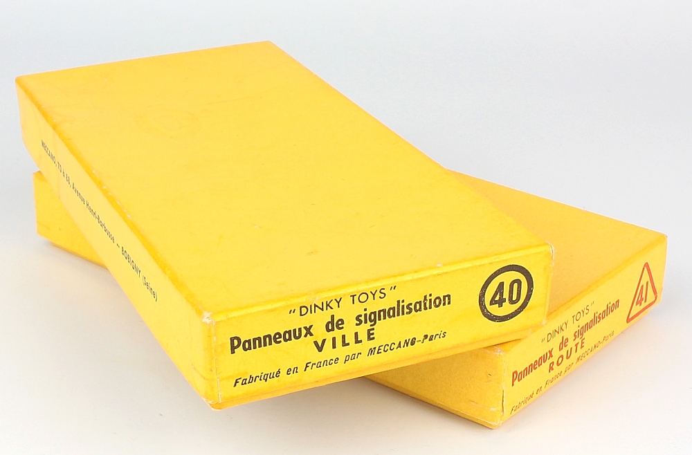 French Dinky 40 Traffic Signs 'TOWN' Set (near mint /boxed) & No. 41 'ROUTE' Set (very, very near mint- mint/boxed) with leaflets. From The Berlin Collection.