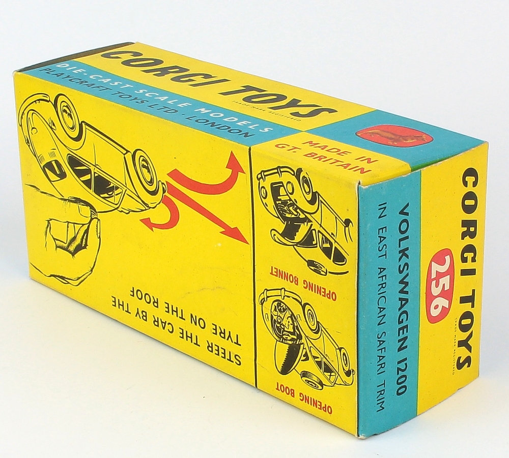 Corgi 256 Volkswagen 1200 in East African Safari Trim with Rhino. Very near mint/boxed. Left-hand drive. With packing, leaflet & circular card ring. From The Inverness Collection.