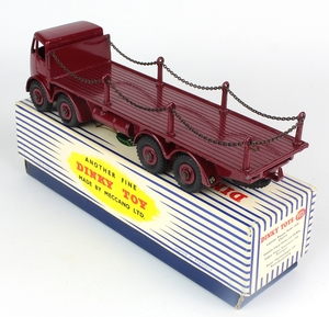 Dinky 905 Foden Flat Truck with Chains. Maroon with maroon wheels. Near mint plus/boxed. Dated 1955. From The Berlin Collection.