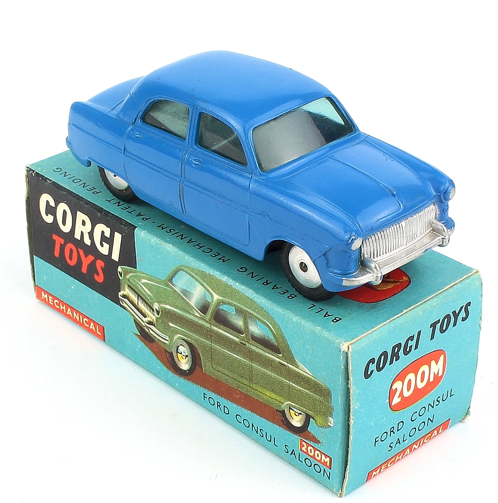 Corgi 200M Ford Consul Saloon. Near mint plus/boxed, with promotional booklet & correct early Corgi Club Memberhsip Form. Scarce mechanical issue in vibrant mid-blue. From the Corgi section of The Reference Collection.