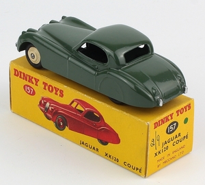 Dinky 157 Jaguar XK120 Coupe. Suede green with CREAM WHEELS. A beauty! Very, very near mint/boxed. From The Inverness Collection.