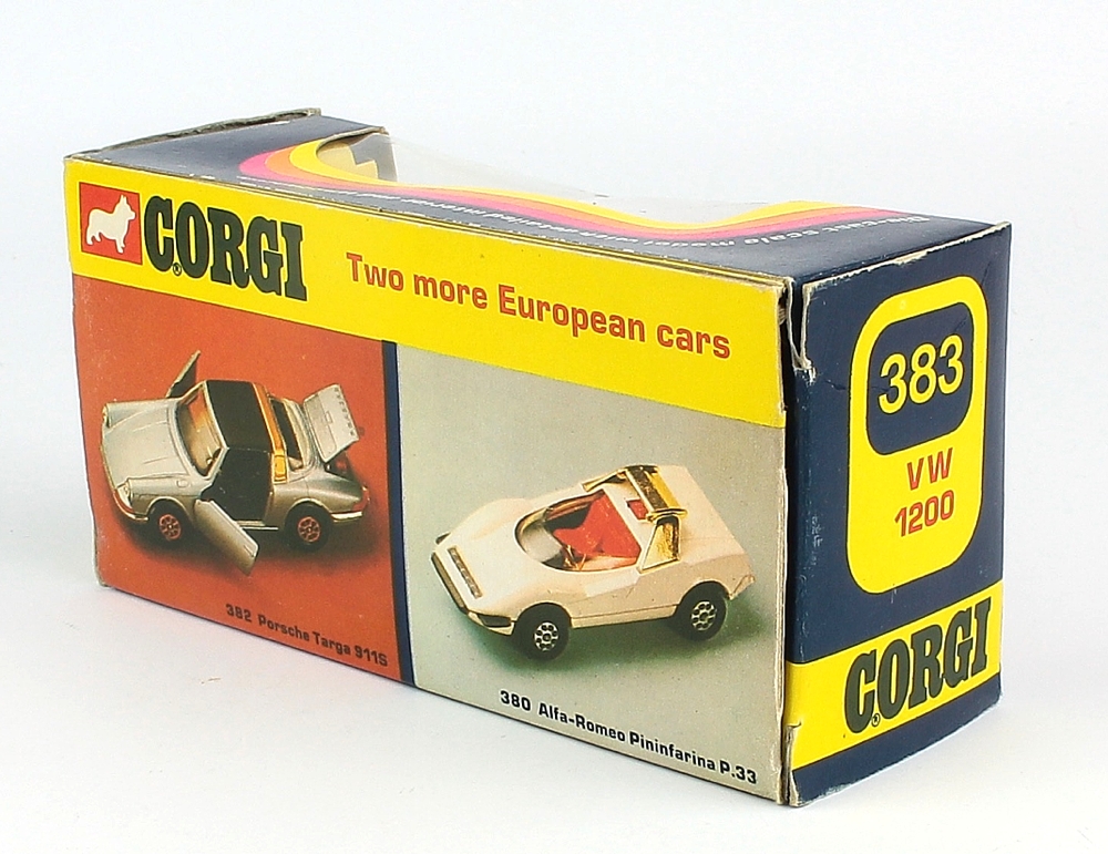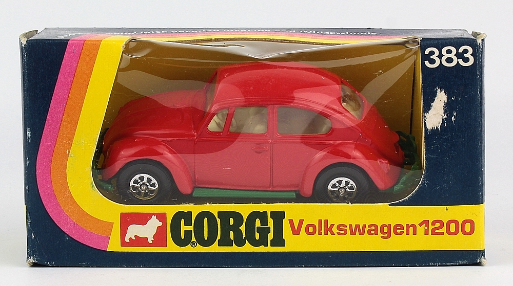 Corgi 383 Volkswagen 1200. Red with green chassis. Catalogued version WITHOUT labels. Scarce. Assumed mint/boxed. From The Old School Collection.