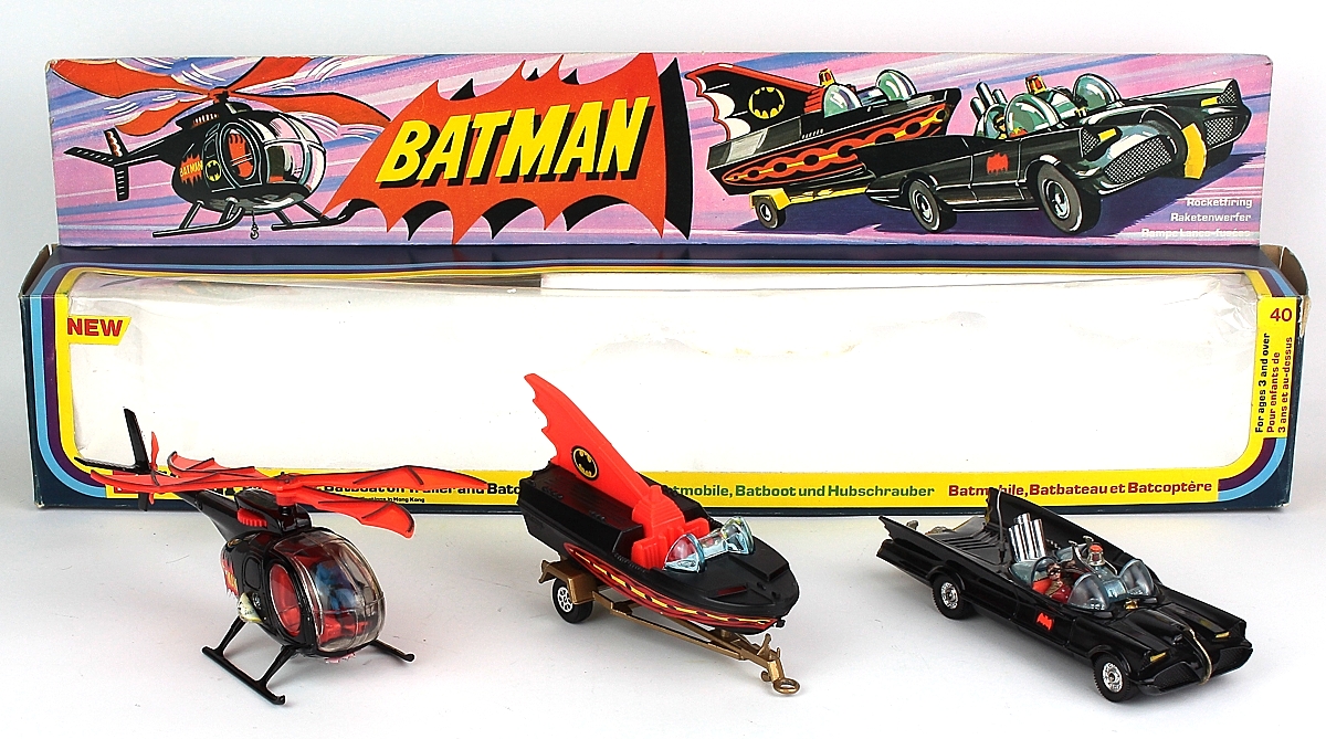 Corgi Gift Set 40 Batman. Three Part Set. Very near mint - mint/boxed. Scarce set from The Mayfair Collection. Bids are invited on this item - please see the relevant section on our Faq Page. QDT starting bid £350. Please note that QDT apply 10% buyer's commission, with a ceiling of £100.