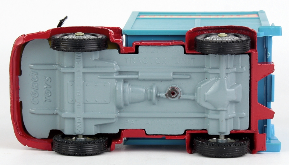 From the popular range of Chipperfield circus models issued between 1964-70. This Bedford TK Truck from 1970 is a rare find with ‘Truck’ Wheels. Correct for this version treaded tyres with Corgi Toys stamped. Vibrant and complete “CHIPPERFIELDS CIRCUS” labels on both sides and, of course – two giraffes (mother and baby, so correct).
