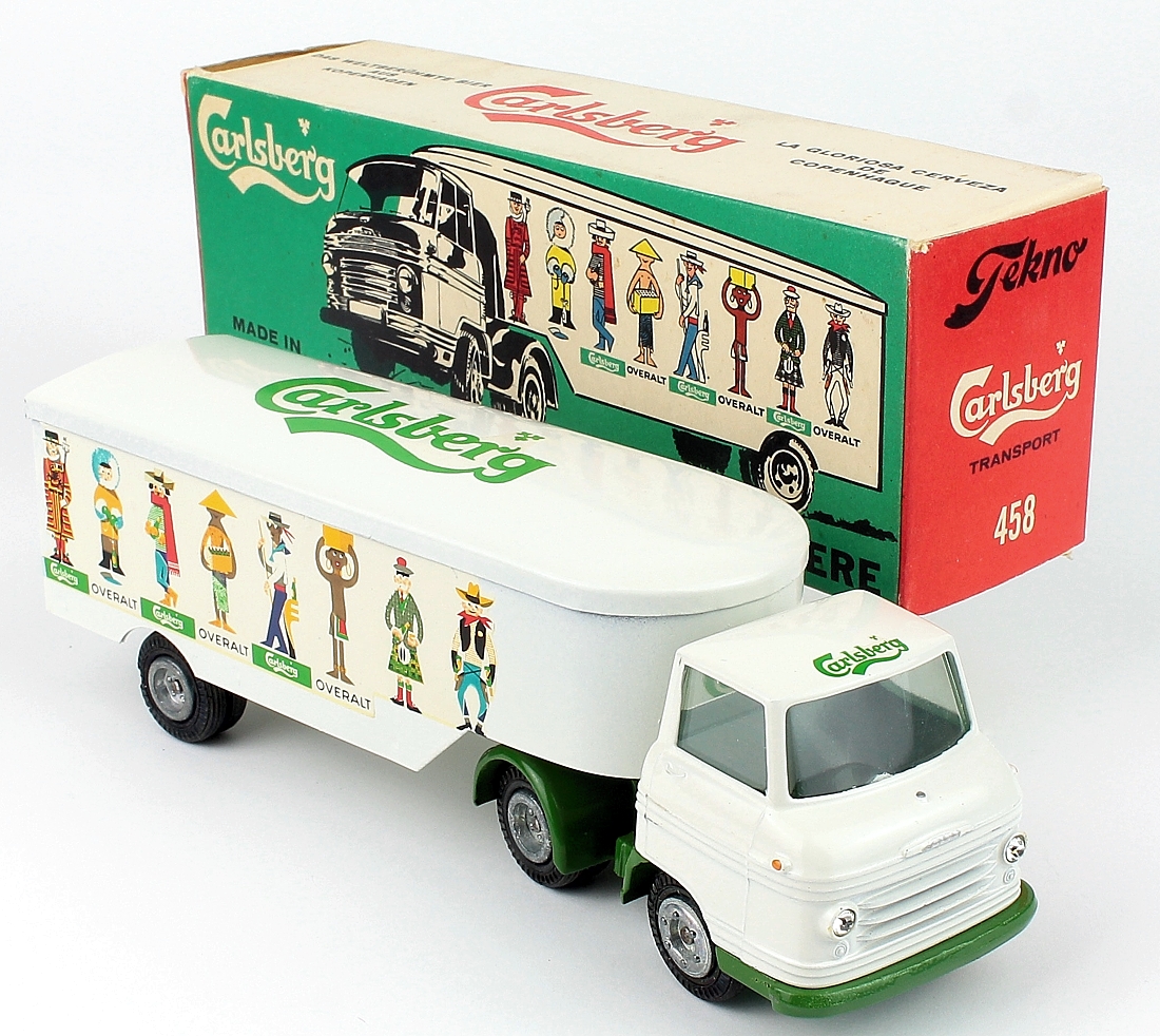 Tekno 458 Volvo Articulated Truck & Trailer 'CARLSBERG'. Very, very near mint/boxed (wear). Very scarce model from The 25 Year Collection.