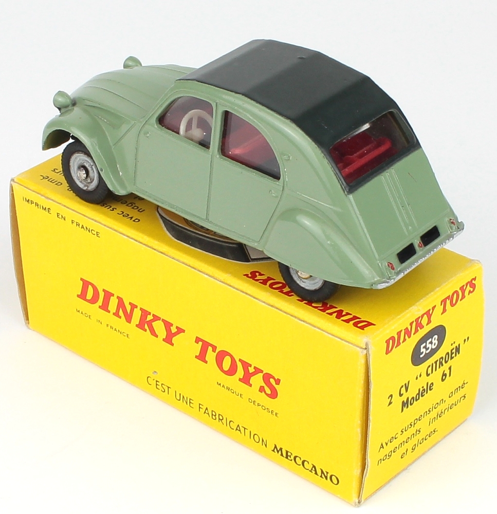 French Dinky 558 Citroen 61 2CV. Grey-green, dark grey roof. Very near mint/boxed. Nice box!