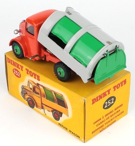 Dinky 252 Refuse Wagon. Orange & grey - scarce transition issue with green TINPLATE SHUTTERS & SILVER RADIATOR & HEADLIGHT ASSEMBLY. Green cast wheels. Very near mint/boxed. From The Berlin Collection.