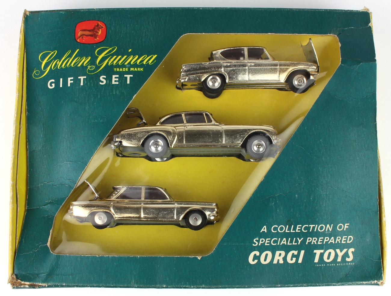 Corgi Gift Set 20 'Golden Guinea' Set. Excellent plus-near mint/boxed, with 2 card packing inserts & 2 still-sealed Accessory Packs C & D. A rare set from The Old School Collection.