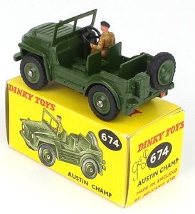 Dinky 674 Austin Champ. Mint/boxed. Scarce late issue with plastic wheels, in the late issue box. From The Nelson Collection