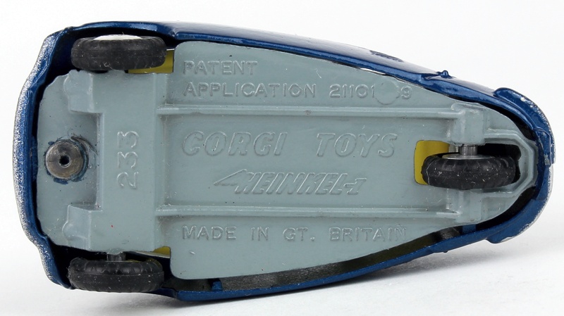 Corgi 233 Heinkel Economy Car. Scarce in metallic blue! Very near mint/boxed. Fresh box! From The Reference Collection.