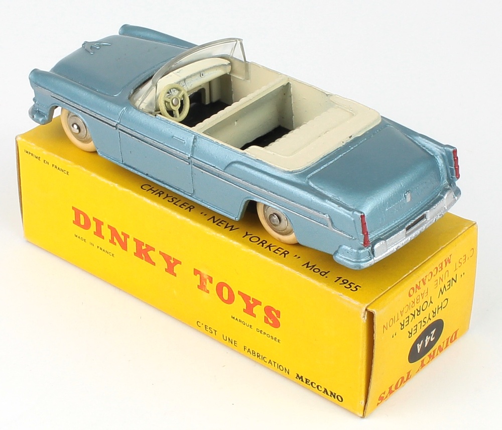 French Dinky 24A Chrysler 'New Yorker'. Near mint plus (rust marking on base)/boxed. Scarce pale metallic blue version. Crisp box. From The Cumbrian Collection.