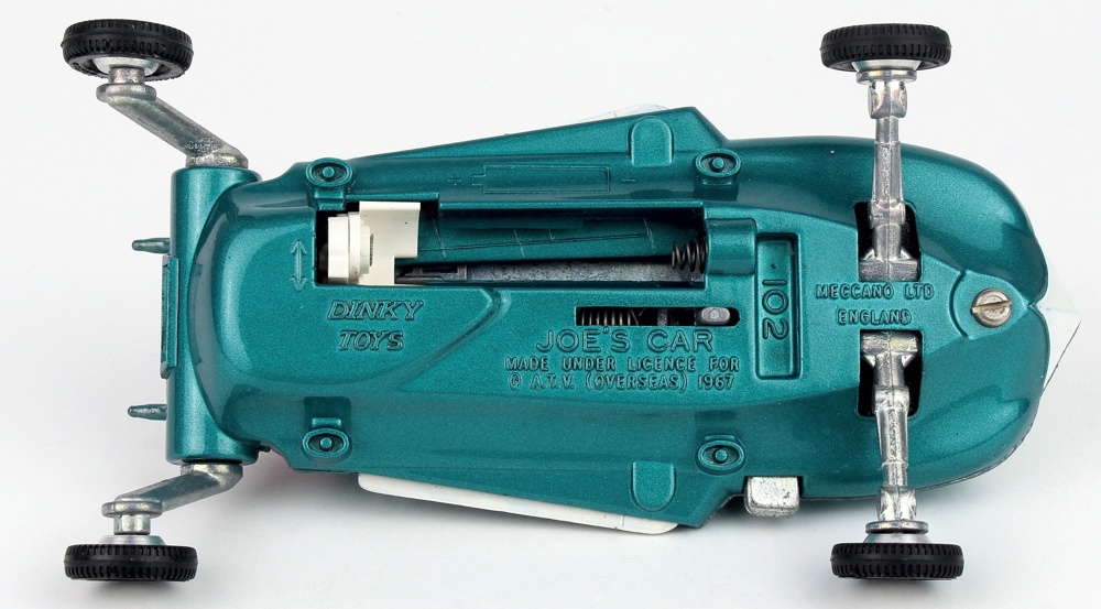 Dinky 102 Joe's Car. Very, very near mint/boxed. Note this model has UNCHROMED metal rods and 'legs'. In pictorial card box. With packing & Instruction Leaflet. From a most discerning collector in the UK.