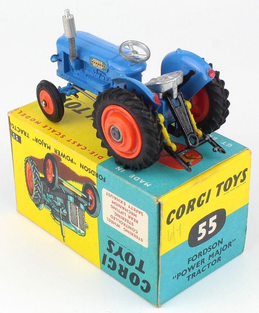 Corgi 55 Fordson "Power Major" Tractor. Orange plastic wheels issue. Near mint plus/boxed. From The Reference Collection.